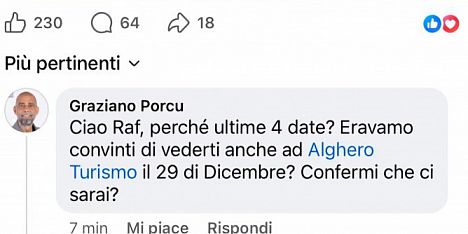 Fratelli d’Italia contro l’Amministrazione comunale dopo il messaggio apparso sui social, in cui il presidente della Fondazione Alghero chiede pubblicamente a Raf se sarà presente il 29 dicembre ad Alghero