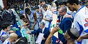 Il Banco di Sardegna Sassari viene eliminato ai quarti di finale dalla Vanoli Cremona, che trova il 77-77 con una tripla a 2” dalla sirena e poi allunga nel tempo supplementare, fino al 97-89 finale