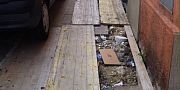 Segnalazione di un cittadino su un tratto di marciapiede in via Flumenargia nel quartiere di Monte Rosello a Sassari. Da oltre un mese manca la pavimentazione e i pedoni rischiano di inciampare