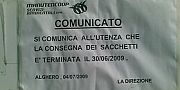 Dall´ufficio Ecologia del Comune di Alghero si precisa che il ritiro dei sacchetti è convenzionalmente operato nel mese di ottobre