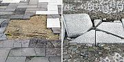 Lastre di basalto spaccato in molti punti a causa dell'elevato traffico di auto e mezzi pesanti. I lavori finiti solo qualche anno fa