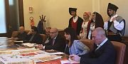 Per le vie della città hanno sfilato oltre tremila figuranti e 250 cavalieri. In piazza d’Italia anche un piccolo corteo di lavoratori che ha richiamato l’attenzione sui problemi del lavoro
