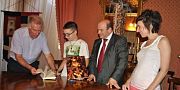 Nicola Sanna premia Francesco Mariano Dettori che a giugno ha conseguito la licenza media con l´orale in sassarese