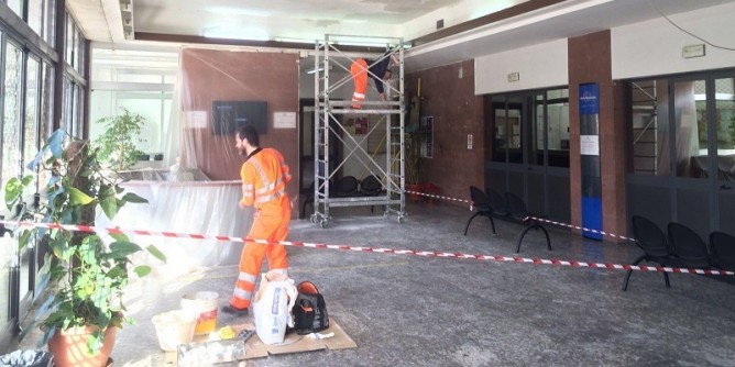 Nella foto: lavori di manutenzione nella sede della Polizia Municipale