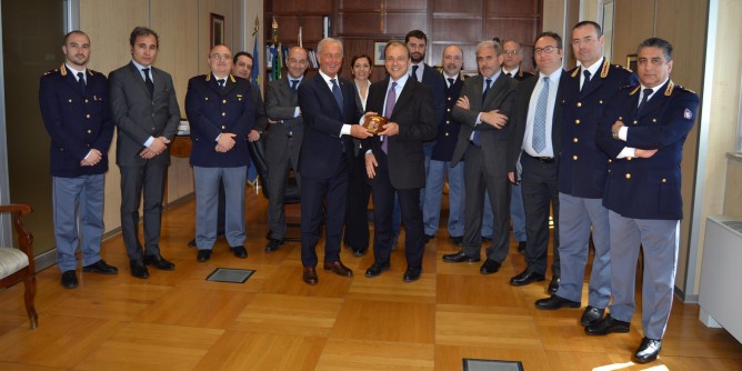 SASSARI - Nella mattinata odierna, a pochi giorni dal suo insediamento, il neo Procuratore della Repubblica di Sassari, dr. Giovanni Caria, ha effettuato una visita di cortesia in Questura a Sassari (nella foto). L’alto Magistrato si è incontrato con il Questore e con tutti i funzionari di Polizia. Il Questore, nel formulare gli auguri per il prestigioso incarico, ha rinnovato, al dr. Caria, «la più ampia disponibilità di tutta la Polizia Giudiziaria, per il perseguimento dei fini comuni atti a garantire, in senso ampio, la sicurezza, anche attraverso una più incisiva attività di repressione, nel rispetto delle direttive emanate dall’Autorità Giudiziaria».