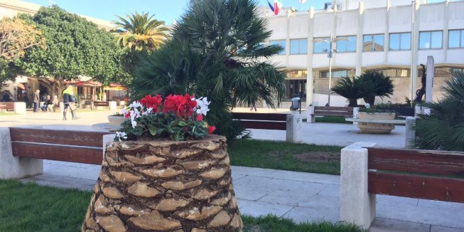 «In accordo con i tecnici – spiega l'Assessora all'Ambiente, Cristina Biancu – si è convenuto di intervenire. Una volta constatata l'impossibilità di recuperare le palme, pur non avendo riscontrato dei rischi immediati per la sicurezza nella piazza, è stato deciso di avviare un'azione preventiva migliorando anche il decoro di tutta l'area. L'attività è stata eseguita dalla società Multiservizi». Le palme sono state abbattute quasi per intero: si è conservata solo la porzione di un fusto che i giardinieri hanno parzialmente scavato all'interno, per mettere a dimora piantine multicolore.