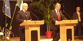 Nella foto la conferenza al teatro civico di Alghero durante l'incontro delle delegazioni italiana e algerina per la firma dell'accordo sul gasdotto Algeria-Sardegna-Italia