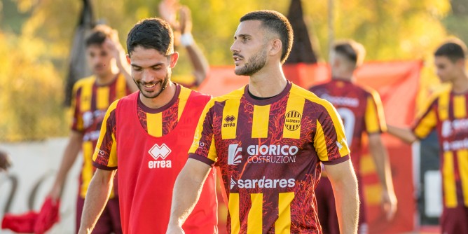 ALGHERO - L’avvio di gara è di chiara marca algherese: pressione alta, possesso palla e padronanza del campo. La prima occasione arriva con Scognamillo, che stacca di testa ma manda di poco alto. Al 15’ l’Alghero sfiora il vantaggio: Baraye, da pochi passi, calcia a botta sicura ma il portiere del Perfugas compie un intervento straordinario. Sulla ribattuta Virdis insacca, ma il gol viene annullato per posizione di fuorigioco. Il portiere avversario è ancora protagonista su Barboza, respingendo in angolo un colpo di testa potente dell’uruguaiano. Ma proprio sugli sviluppi del corner arriva il meritato vantaggio: cross perfetto di Mereu dalla bandierina e Barboza svetta più in alto di tutti, firmando lo 0-1.
