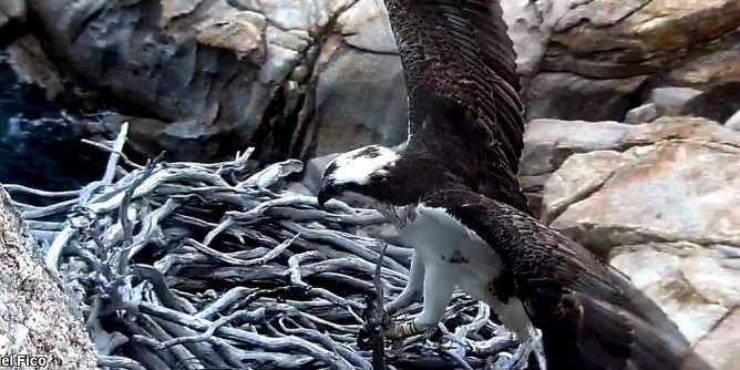 ALGHERO - Sono davvero straordinarie le immagini e le informazioni che stanno giungendo dalla telecamere installate dal Parco naturale regionale di Porto Conte per monitorare le tre specie di rapaci ormai più rappresentative dell’area protetta ossia il falco pescatore, l’avvoltoio grifone e l’avvoltoio capovaccaio. Una rete di telecamere di videosorveglianza messa a punto per monitorare in particolare l’eccezionale ritorno alla nidificazione del falco pescatore, ormai alla sua sesta stagione riproduttiva, e che oggi vede censiti ben tre nidi di cui uno nella zona di riserva integrale dell’area marina protetta Capo Caccia – Isola Piana. Oggi vi raccontiamo la storia di una femmina di falco pescatore osservata nei giorni scorsi su un dei tre nidi. Nata nella primavera del 2017 nella piccola Isola di Cabrera, nelle Baleari, è stata inanellata sul nido il 9 giugno con un anello giallo che la identificava con la sigla L7 e si è involata regolarmente pochi giorni dopo. Grazie all’anello, da allora è stata osservata in più di un’occasione da ricercatori ed appassionati. La prima volta il 26 febbraio 2018, quando non aveva ancora un anno, in Andalusia in una importante riserva naturale la Marismas del Oide, un’area umida di 7000 ettari.