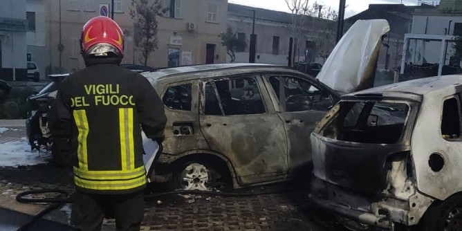 Scia di fuoco: Tre auto in fumo a Sorso