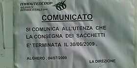 La società che gestisce la nettezza urbana ad Alghero ha fatto sapere che fino a ottobre la distribuzione dei sacchetti per l´organico e la plastica sarà interrotta
