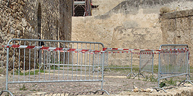 Nella foto: le transenne adiacenti alle vecchie mura della Piazza