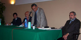 L’incontro è stato introdotto dai saluti del Vicesindaco di Alghero, Giancarlo Piras, e dal presidente dell’Amministrazione provinciale, Franco Masala. Entrambe le autorità hanno ribadito l’impegno di città e provincia in favore delle manifestazioni che favoriscono, facendole conoscere, le imprese locali. Giancarlo Piras ha, in particolare, riaffermato l’attenzione verso gli eventi di questo genere da parte della città, che s’impegna ad immettersi nel circuito dei grandi centri congressuali. Un altro intervento introduttivo è stato affidato al presidente della Camera di commercio, Gavino Sini, il quale ha subito dichiarato di ravvisare nel convegno un segnale forte verso la concretizzazione dell’idea, che in sé, seppur buona, non basta, ma che: “Quando è buona trova il capitale e lo investe soprattutto nell’innovazione.” Quindi è stata la volta del presidente nazionale dell’Accademia Italiana della Cucina, Giuseppe Dell’Osso, il quale, coerentemente alle segnalazioni precedenti, ha rilevato l’importanza della collaborazione tra Università e Imprese, ricordando che la grappa italiana continua a resistere al mercato dell’imitazione.