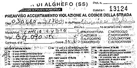 Nella foto: uno dei verbali comminati il fine-settimana di Pasqua presso l'aeroporto di Alghero