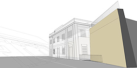 Nella foto: il fabbricato dell'ex dogana e la simulazione dell'intervento