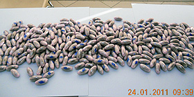 Nella foto: parte degli ovuli di hashish sequestrati a Olbia
