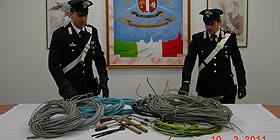 I Carabinieri li hanno colti in flagranza di reato. Proprio nell’ultimo periodo i militari hanno incrementato i servizi finalizzati alla prevenzione ed alla repressione della criminalità predatoria, anche perché attualmente le materie prime come il rame hanno accresciuto notevolmente il proprio valore di mercato. I danni arrecati all’installazione sono tuttora in corso di accertamento.