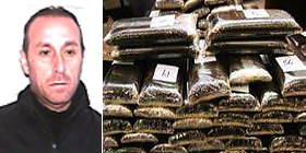 Nella foto: La Ferla Giovanni Pio e parte della droga sequestrata nell'operazione Calosa