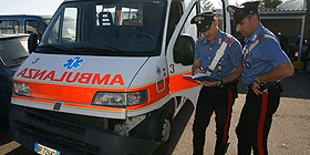 Nella foto: i carabinieri con l'ambulanza sequestrata a Sassari