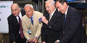 Nella foto, da sinistra: Irakli Khutsurauli, Ministro Plenipotenziario dell'Ambasciata di Georgia; Giancarlo Schisano, Direttore Operativo di Alitalia; Konstantin Gabashvili, Ambasciatore della Georgia in Italia; Sergio Berlenghi, Responsabile Commerciale Aviation di Aeroporti di Roma.