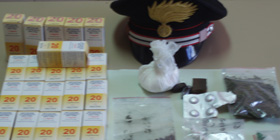 I carabinieri hanno rinvenuto nell´abitazione di Valledoria oltre 20 dosi di eroina, più di 100 grammi di cocaina in polvere, 26 grammi di hashish, 30 grammi di marijuana e decine di flaconi di metadone