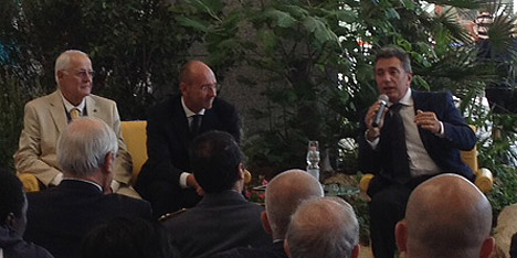 Nella foto: il governatore Ugo Cappellacci in aerostazione insieme al direttore Sogeaal Peralda e il presidente Luzzatti