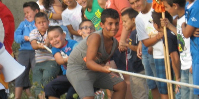 Un po’ impacciati prima di rompere il ghiaccio, i piccoli (di età compresa tra i quattro ed i dodici anni) hanno appreso le regole di giochi a loro sconosciuti, che nelle tradizioni dei nonni avevano nomi diversi a seconda dei luoghi. A Porto Torres si chiamavano “dolone” (paradiso), “brincu sussincu” (cavallina), “li cecci” (i cerchi), “lu cannau” (la fune), “li ballocci” (le biglie di vetro) e così via. I piccoli si sono cimentati con vero entusiasmo nelle competizioni di squadra, provando emozioni nuove (per loro che per “gioco” intendono l’interazione con uno schermo) nel contatto fisico e nello schiamazzo. Non certo annoiati genitori e nonni, impegnati nell’incitare i piccoli campioni e nell’ingaggiare dispute sulle “autentiche” regole dei giochi.