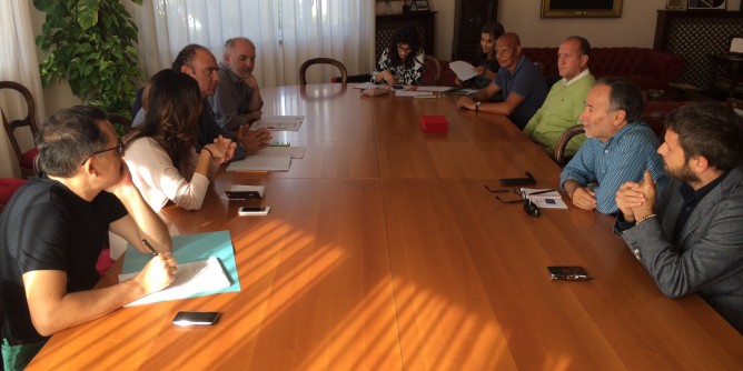 ALGHERO – Primo incontro operativo nelle sale di Sant’Anna tra Amministrazione Comunale e rappresentanti di categoria. Venerdì mattina, il sindaco di Alghero Mario Bruno, accompagnato dagli assessori comunali al Turismo ed alla Cultura Gabriella Esposito ed alle Attività Produttive Natacha Lampis, dal presidente della “Fondazione Meta” Pietro Alfonso e Roberto Nulvesu dell’ufficio Cultura, ha incontrato i rappresentanti dei commercianti e delle associazioni di categoria per programmare le attività in occasione del Cap d’Any 2014-15.