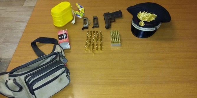 L’uomo, nel corso di una perquisizione domiciliare presso la propria casa colonica sita in quella via Europa, è stato sorpreso ad occultare una pistola semiautomatica marca Beretta, calibro 7,65, con matricola abrasa, completa di due caricatori e 96 cartucce.