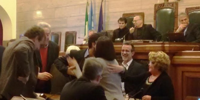 Nella foto i consiglieri comunali si complimentano con Matteo Lecis Cocco-Ortu