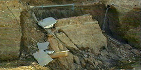 nella foto la parete dello scavo crollata