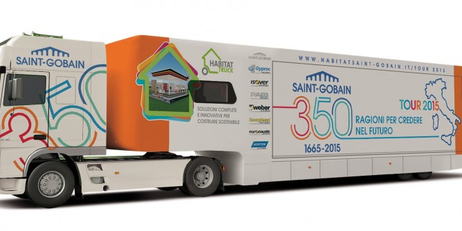 Al suo secondo tour, dopo l’esperienza del 2014 che l’ha visto percorrere 17mila chilometri e toccare cinquantasei tappe in undici regioni, nella nuova edizione si arricchisce ancor più di novità di prodotto e percorsi sensoriali per guidare il pubblico alla scoperta dei vantaggi degli ultimi ritrovati della ricerca Saint-Gobain, offrendo precise risposte e semplici soluzioni a domande ed esigenze ricorrenti nella vita di tutti i giorni e nelle case di tanti italiani. L’Habitat Truck approda in Sardegna dopo essere stato impegnato nelle tappe del “Giro d’Italia 2015”, nelle quali ha portato materiali ed innovazioni a diretto contatto con la grande comunità degli appassionati di ciclismo e di una delle kermesse sportive nazionali più rappresentative ed apprezzate nel mondo. Sarà l’occasione di poter sperimentare e vedere dal vivo anche le soluzioni prodotte nello stabilimento sardo di Saint-Gobain Weber leader mondiale nella produzione di collanti per piastrelle e nelle soluzioni per la facciata.
