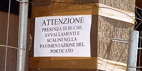 nella foto l´avviso sotto il portico Oviesse