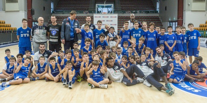 Nella foto: i bambini delle squadre mini basket della Dinamo Banco di Sardegna Sassari
